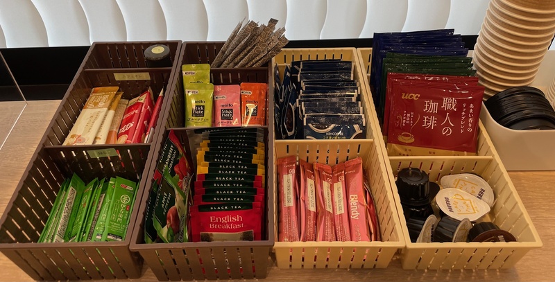 スティックコーヒーやお茶、ウォーターサーバなどがございます。ご自由にご利用ください。