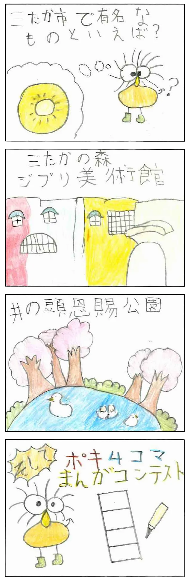 公開日 2024年12月13日 最優秀賞 優秀賞 入選 最優秀賞 たくわん(12歳) 『Poki??』 優秀賞 りんちょび(8歳) 『ポつきさま』 まほみる(14歳) 『Pokiスタイル』 91(10歳) 『ポキつむり』 MOMONA(8歳) 『あさひかとおもったら…』 入選 ユーカ(8歳) 『線香花火』 りんちょび(8歳) 『レーダー発進!!』 みちしるべ(14歳) 『静電気』 あっぴ(10歳) 『三たか市といえば・・・』 NOA(9歳) 『ポキッと地蔵』 ハナmaru(13歳) 『ポキのあったかフォルム』 さる(10歳) 『三鷹代表!』 みっき(14歳) 『ポキの感情』 99はいめのサイダー(10歳) 『ポキのきらいなAI』 マナチ(14歳) 『ポキの長い髪』 ※2024年4月2日時点の年齢を表示しています。